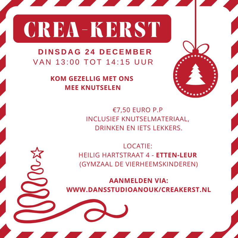Dinsdag 24 december gaan we gezellig kerst knutselen.